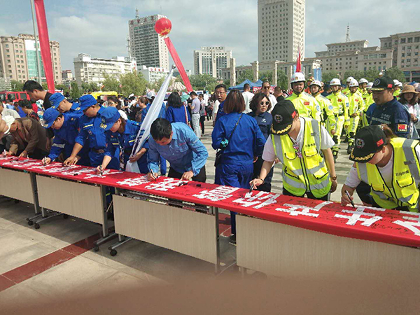 ? ??活動(dòng)現(xiàn)場(chǎng),群眾代表宣讀了安全生產(chǎn)倡議書;參加活動(dòng)的市領(lǐng)導(dǎo)還與全體人員共同開展了安全生產(chǎn)倡議千人簽字活動(dòng)